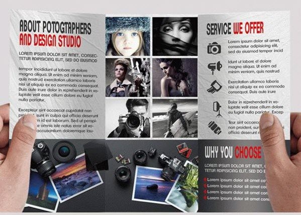 Another effective type of advertising, especially in terms of local advertising, is handing out promotional brochures. Brochures perfectly fit the promotional needs of photography services, as they combine both advertising and portfolio features. On the one hand, you can showcase your work with the help of beautiful photos you made, and on the other hand, you put important information: