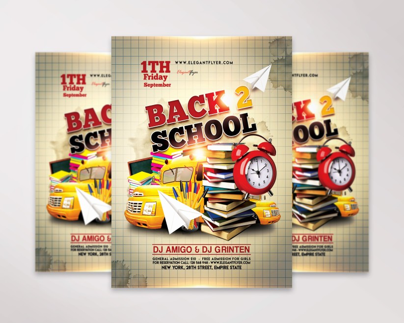 School theme party events become very popular before and during September. With these premium and free flyer templates in PSD for a back to school party, you can rest assured that you don’t have to wait for a custom school theme flyer design too much time. Using pre-designed school theme flyer templates, you save a lot of time and money. Besides, most of the flyers are provided with social media cover templates designed in one style with flyer templates in PSD.