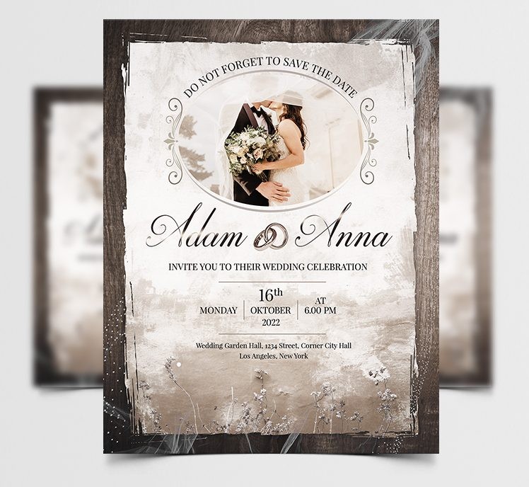 Download free wedding invitation PSD template to announce the most important event of your life! Our free invitations are easily editable. All you need to do is to replace the photos and change the text. With our pre-made marriage templates you will make your wedding the most memorable event for your family.