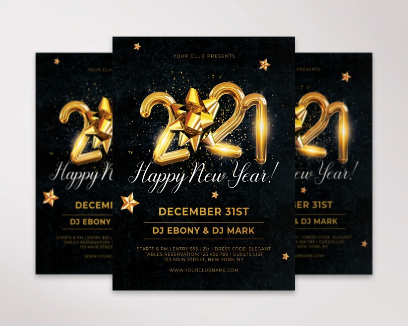 Host a New Year event that no guest will forget! Intense dark palette matched with the golden shine will draw every pair of eyes to your stunning invitations. Although this premium sample says ‘2020’, you can easily change this number and the rest of the text with some fast PS editing.