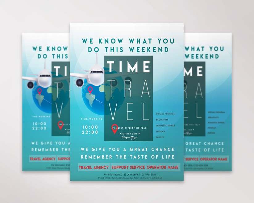 Using these flyers, you can attract any target audience. For example, the list contains templates for those who organize business trips. Our marketers know that your potential customers do not have much time to read the flyer, so we made the design simple and concise. Whether you are the owner of a large travel company or organize a small travel weekend, this list contains travel agent flyer templates that are ideal for you.