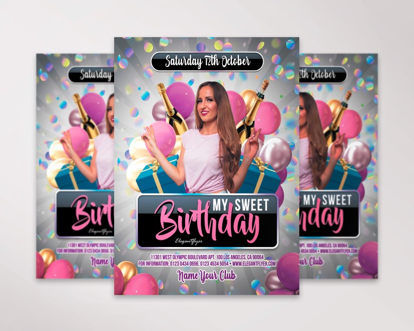We have a preset size of happy birthday flyer templates which means you can go to a printing house and get them printed there. But in fact, your invitation can have any size if you use our layouts.
