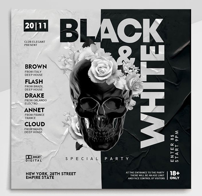 - Black & White Party – Instagram Stories Template in PSD + Post Templates