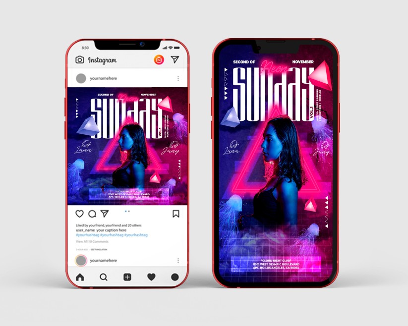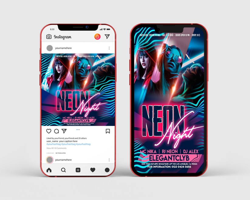 - Neon Night – Free Instagram Stories Template in PSD + Post Template