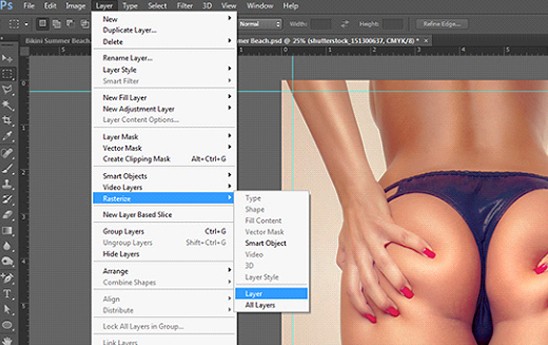 Crop the unnecessary part of the photo. To begin with you need to rasterize the image. Go to “Layer >> Rasterize >> Layer”.