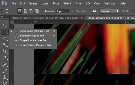 The flyer is almost ready. Combine all the layers with the image of palm trees and use the instrument “Rectangular Marquee Tool”.